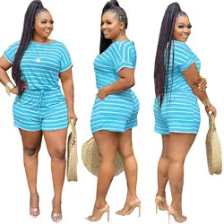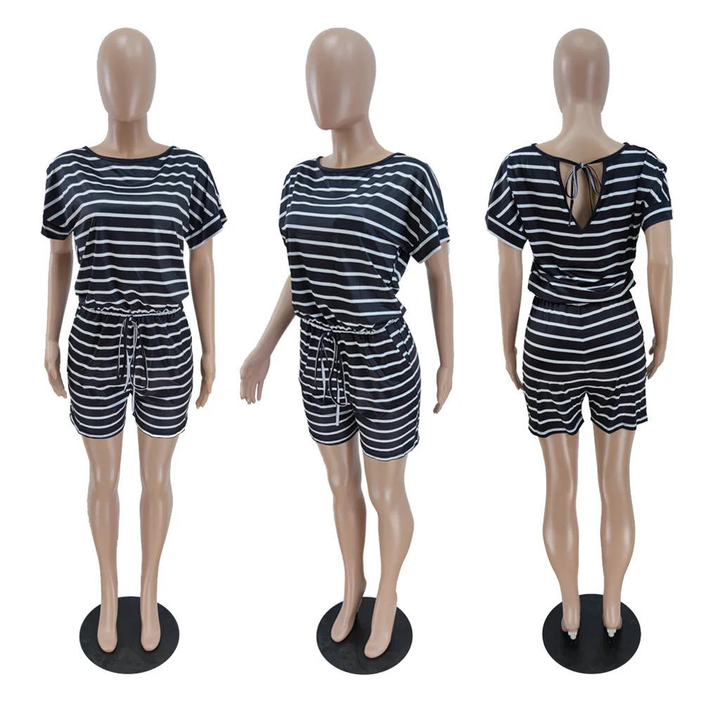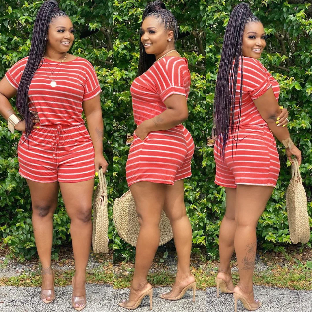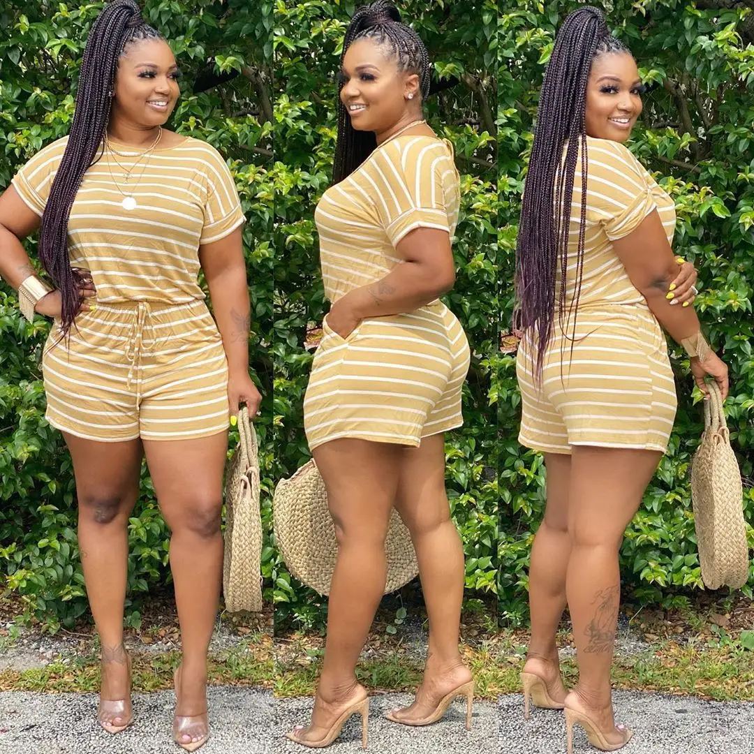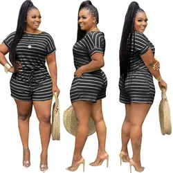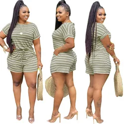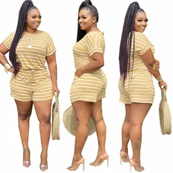 2021 new Women Striped Clothing Short Pants Homedress Leisure Wear 2 two Piece Set