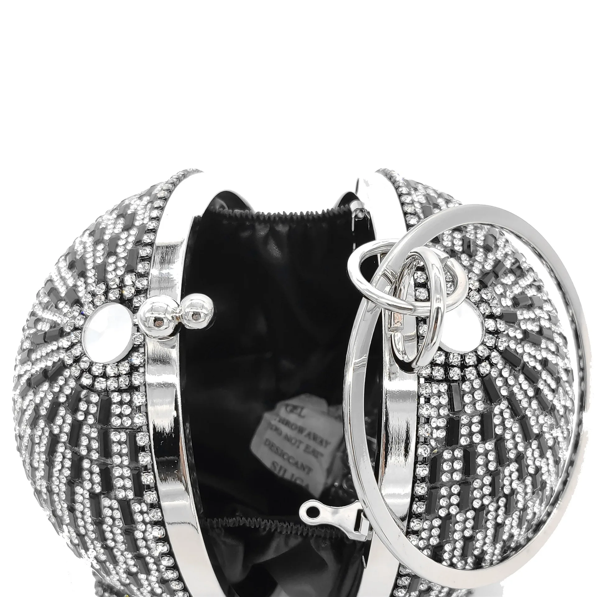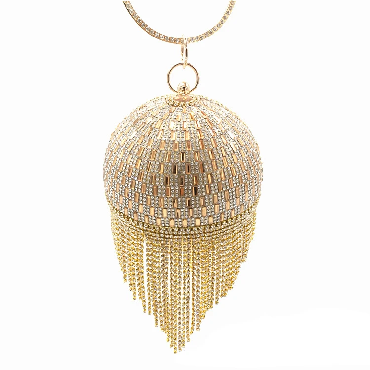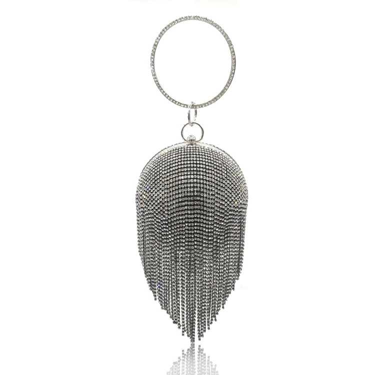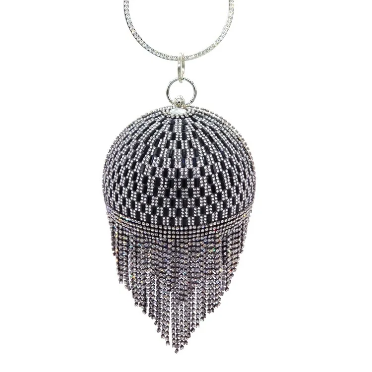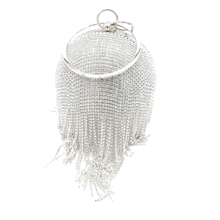 2022 Hot New Products Round Ladies Silver Handbag Tassel Crystal Evening Women Rhinestone Clutch Bags