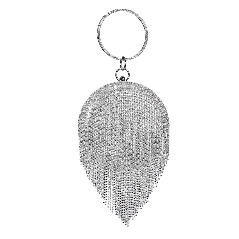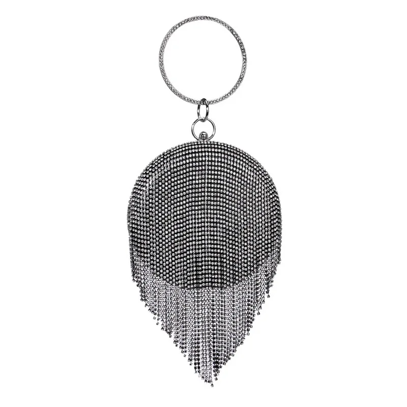 Be the first to review “2022 Hot New Products Round Ladies Silver Handbag Tassel Crystal Evening Women Rhinestone Clutch Bags”