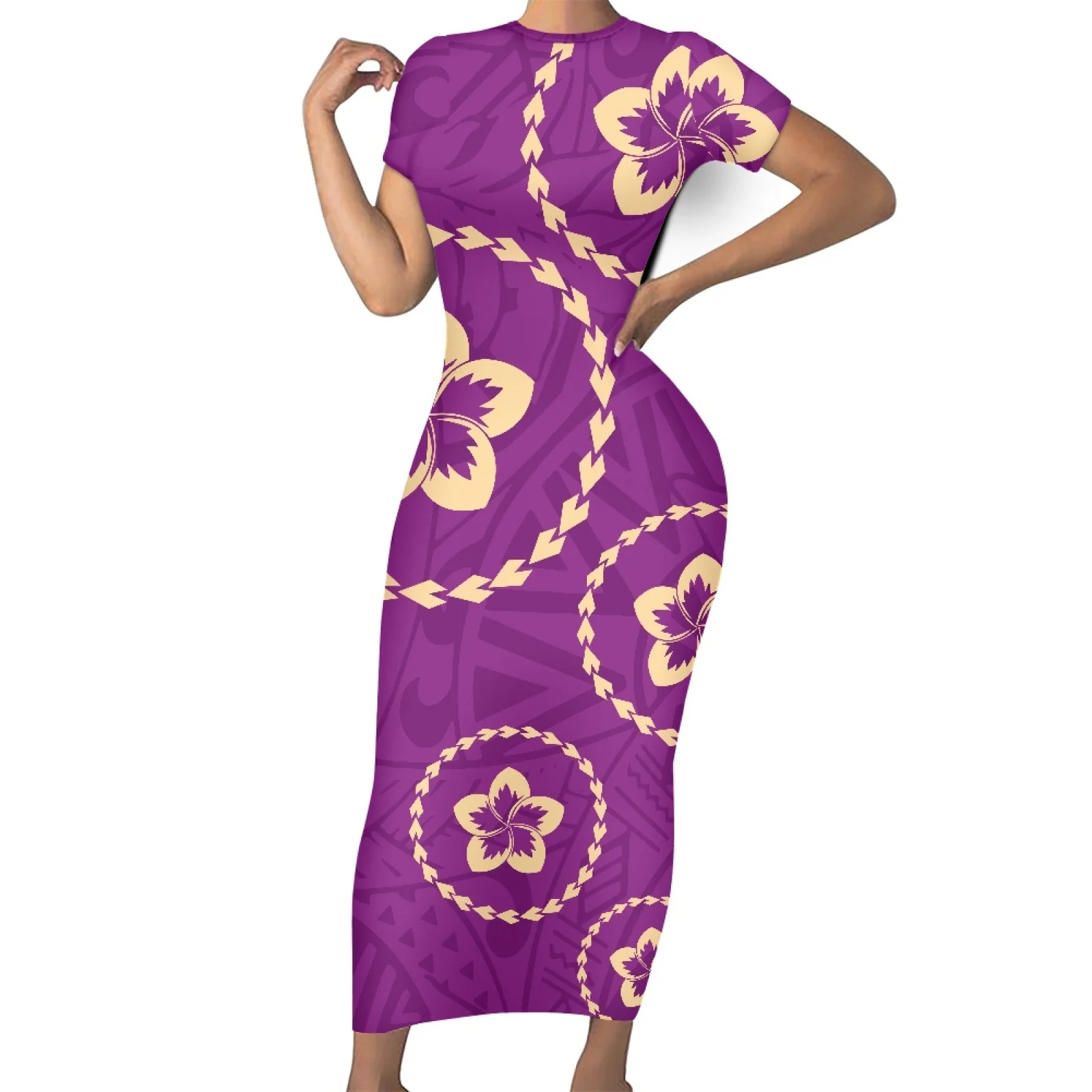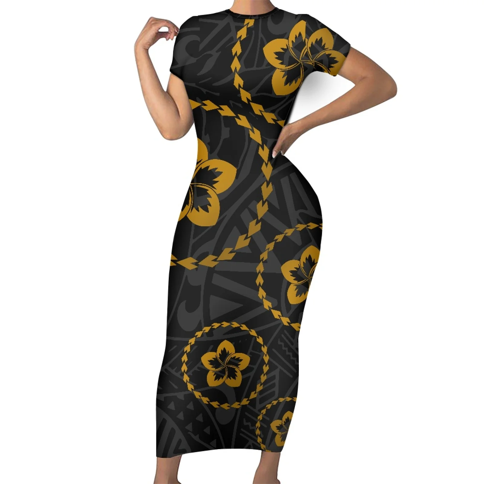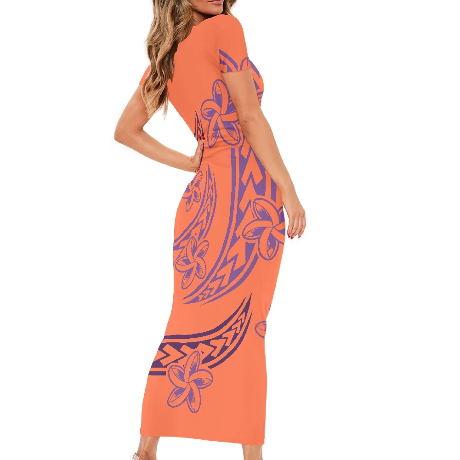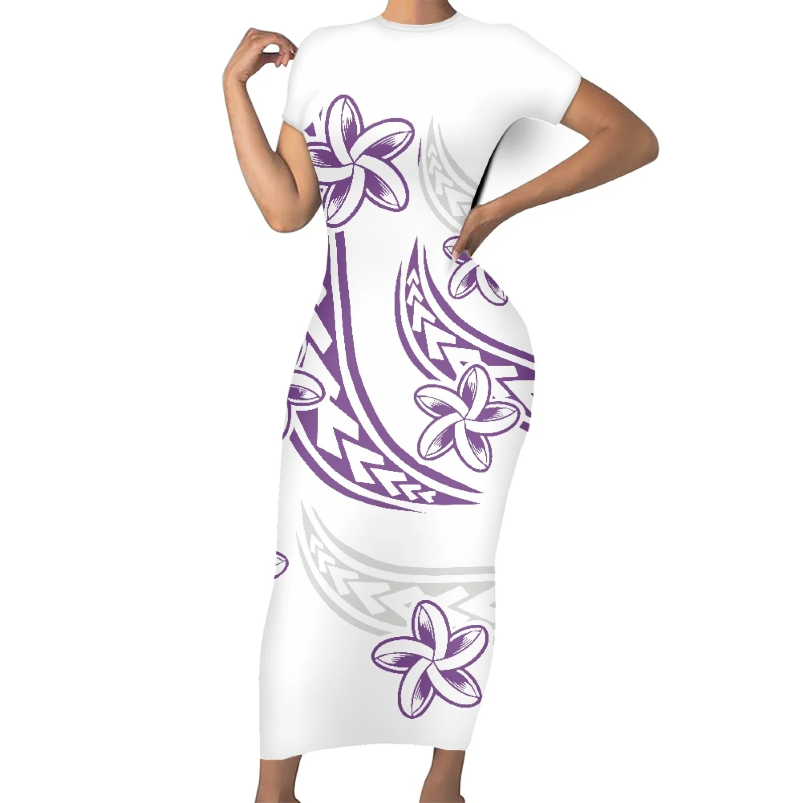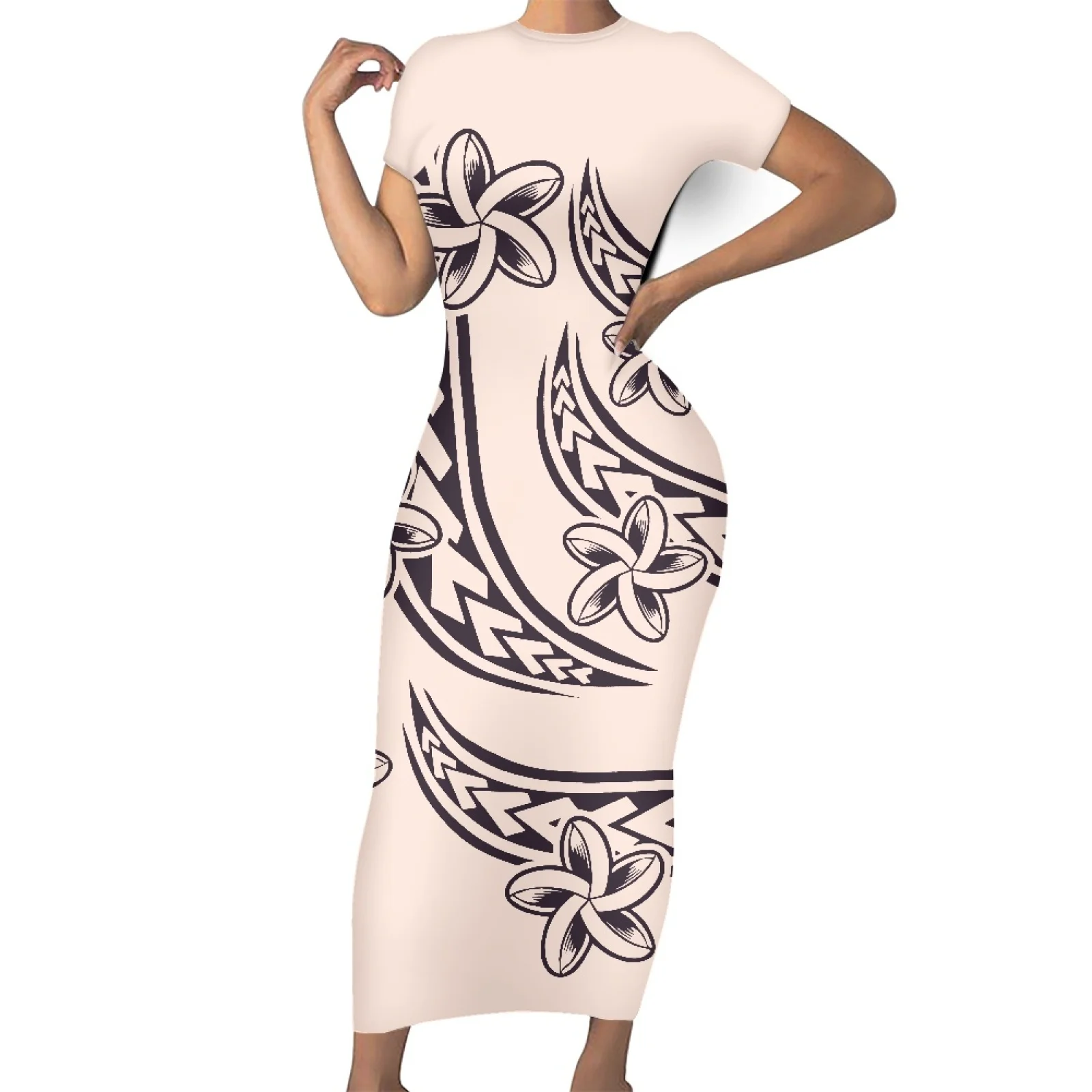 Clothing Manufacturers Custom Plumeria Print Summer Short Sleeve Elegant Women Dress Polynesian Tribal Design Tight Dress