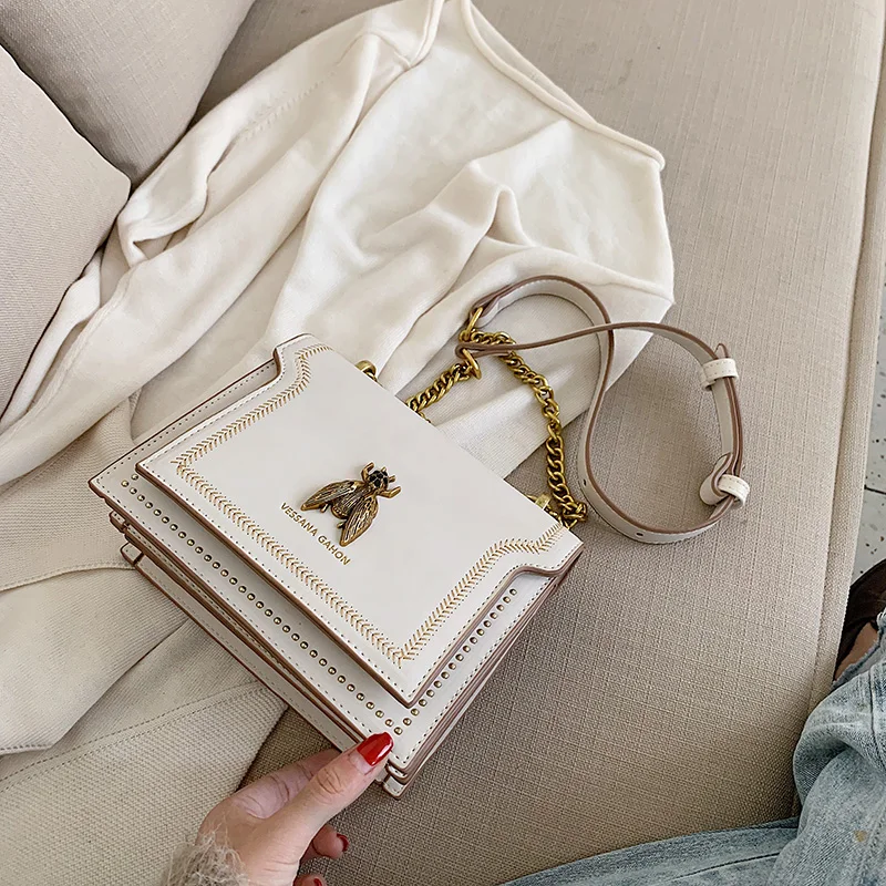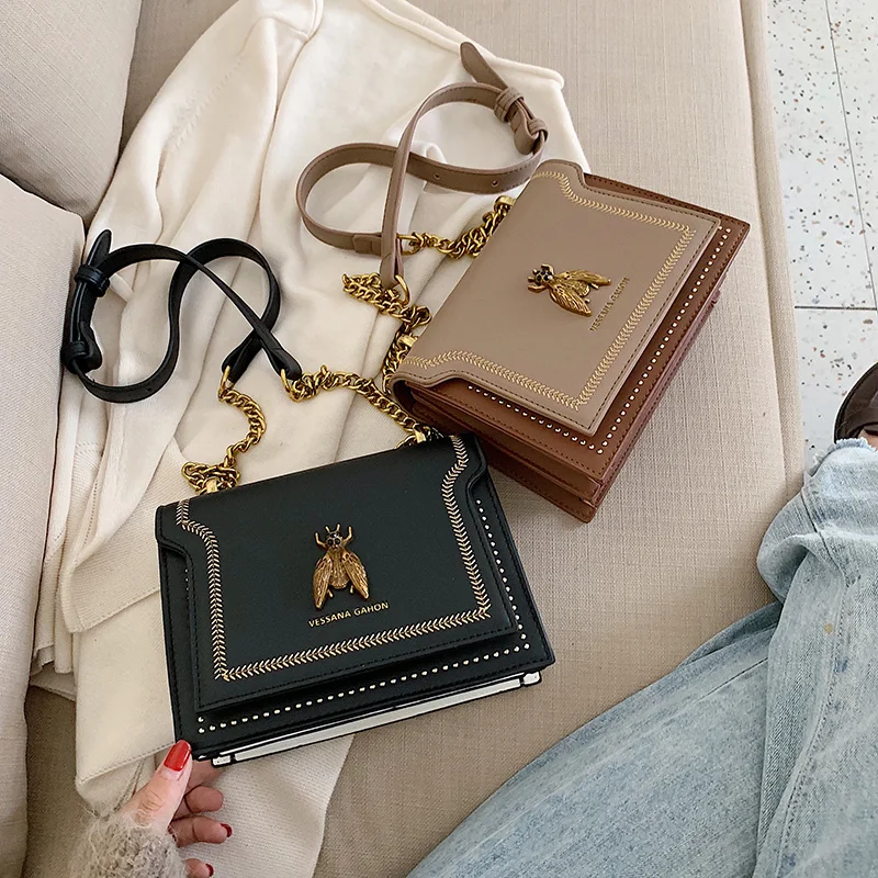 Custom Logo Small Rivets Handbags 2022 Girls Luxury Bee Purses Females Korean Style Hand Bags For Woman
