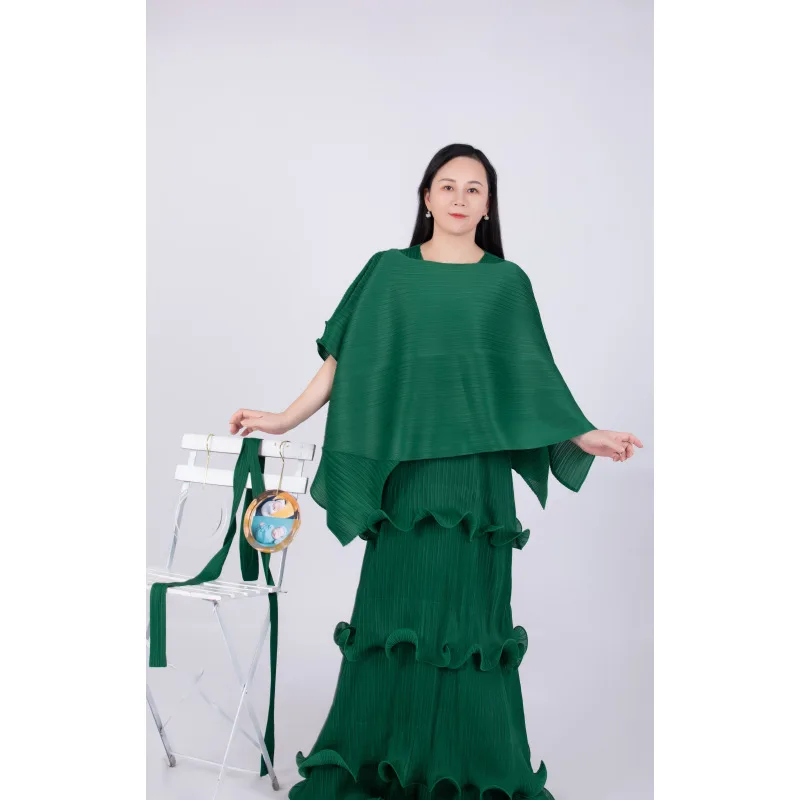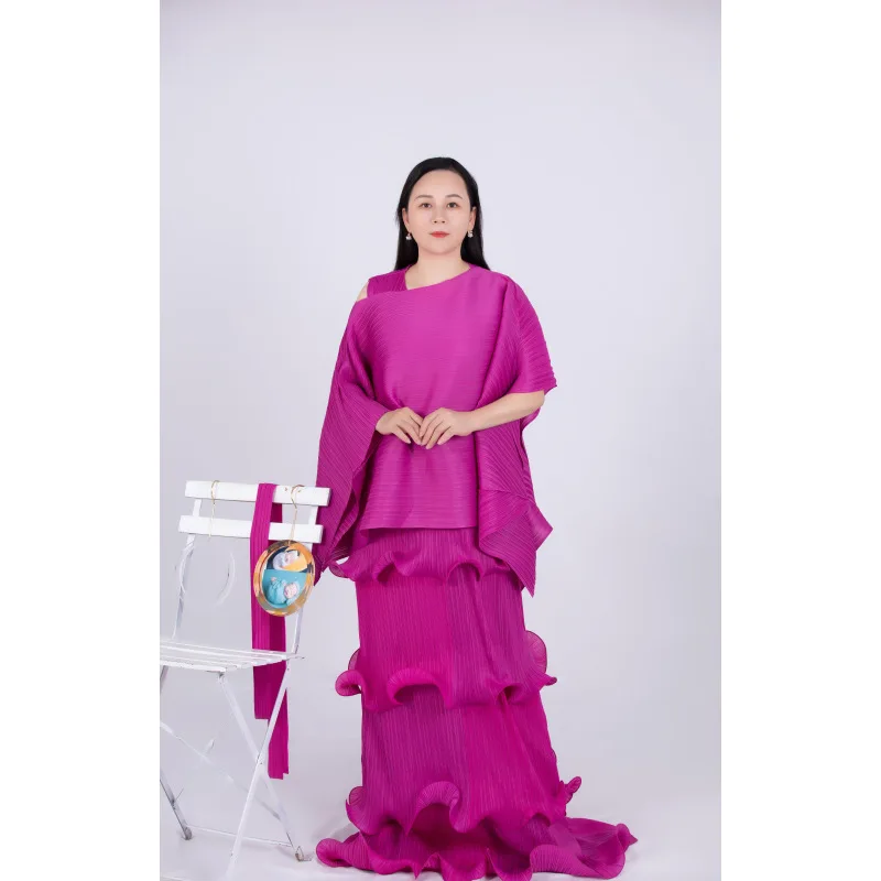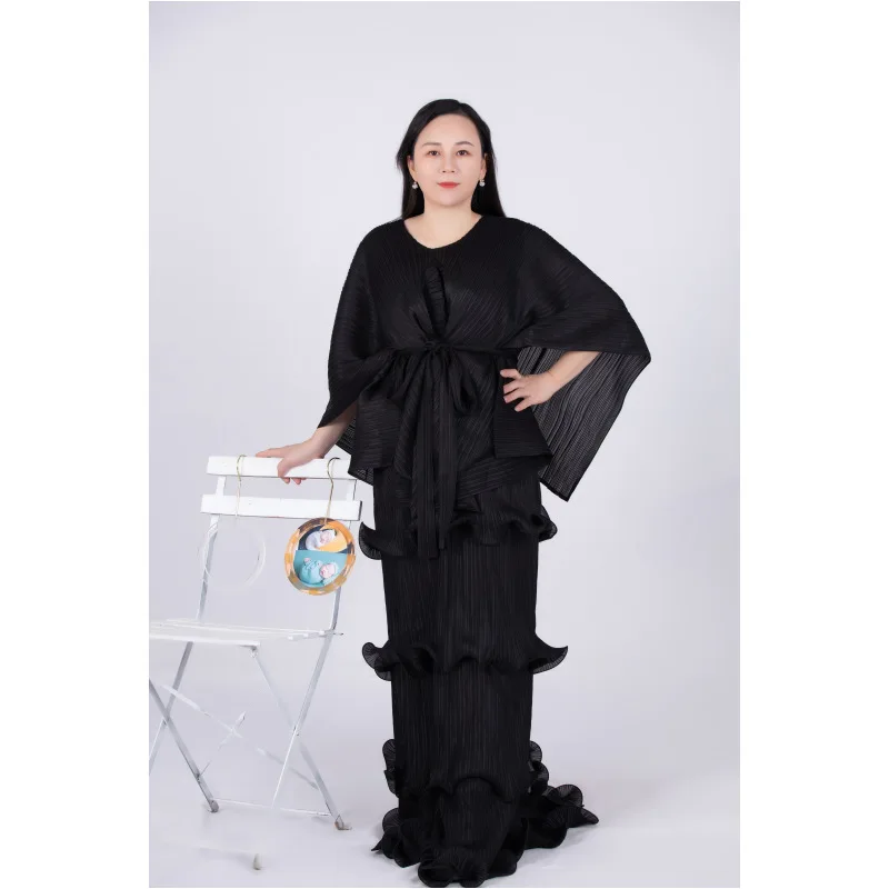 Be the first to review “OUDINA New Solid Color Sleeveless Round Neck Two Piece Sets Pleated Plus Size Clothing Women’s Dress”