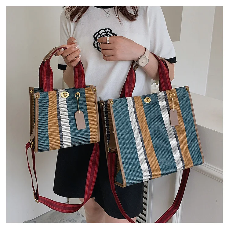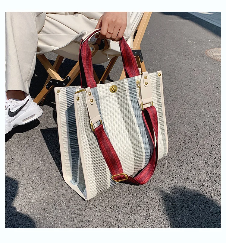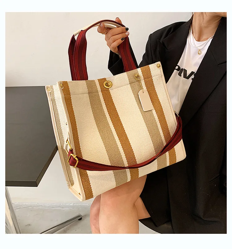 sac a main women tote handbag designer shoulder bag purses with strip luxury designer canvas top handle tote bag for women