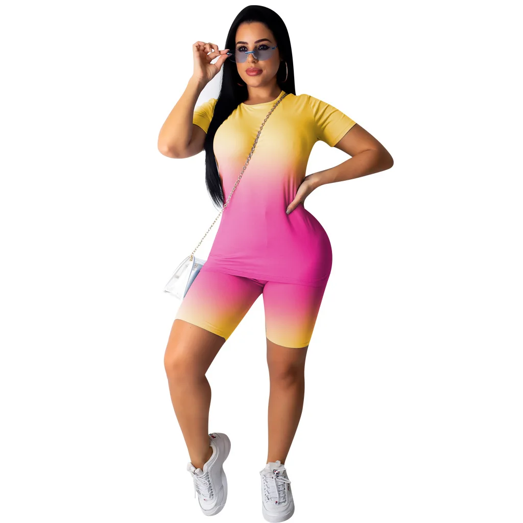 Shorts Set Sexy Track Suit Outfits Women Clothing for Women Summer Two Piece Casual Dresses Crew Neck Print Straight OEM Service