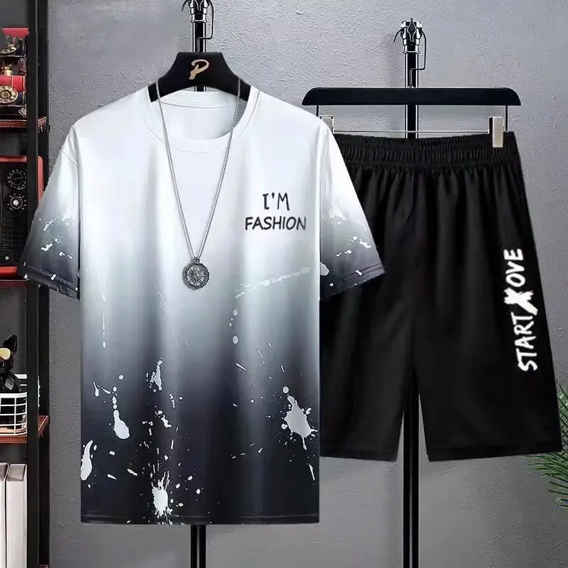Summer Streetwear Hip Hop Print Clothing Men Shorts Set Mens Sets 2 Piece Clothes MTPS-004
