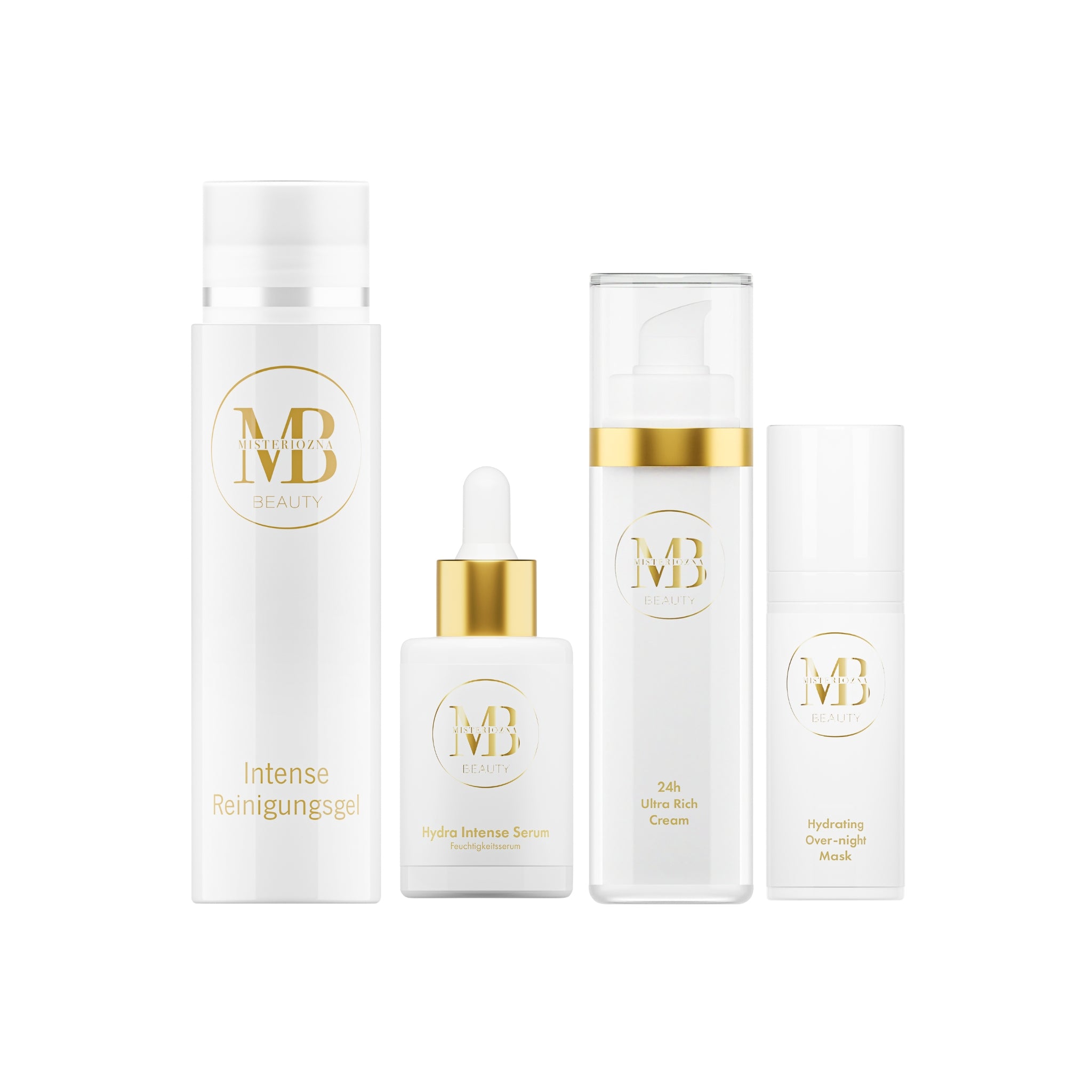 1. Intense Reinigungsgel (150ml): Dieses Reinigungsgel bietet eine gründliche, aber sanfte Reinigung mit antibakterieller Wirkung durch MicrosilberBG und beruhigendem Spitzwegerich. Ideal für alle Hauttypen, besonders aber für sensible und trockene Haut