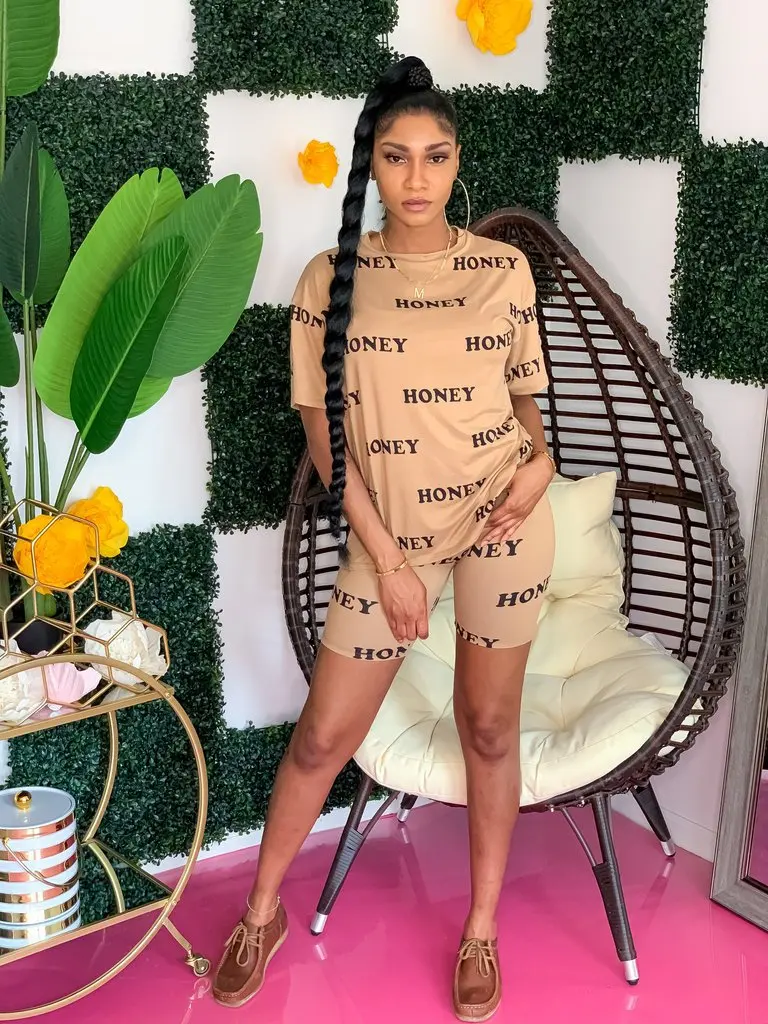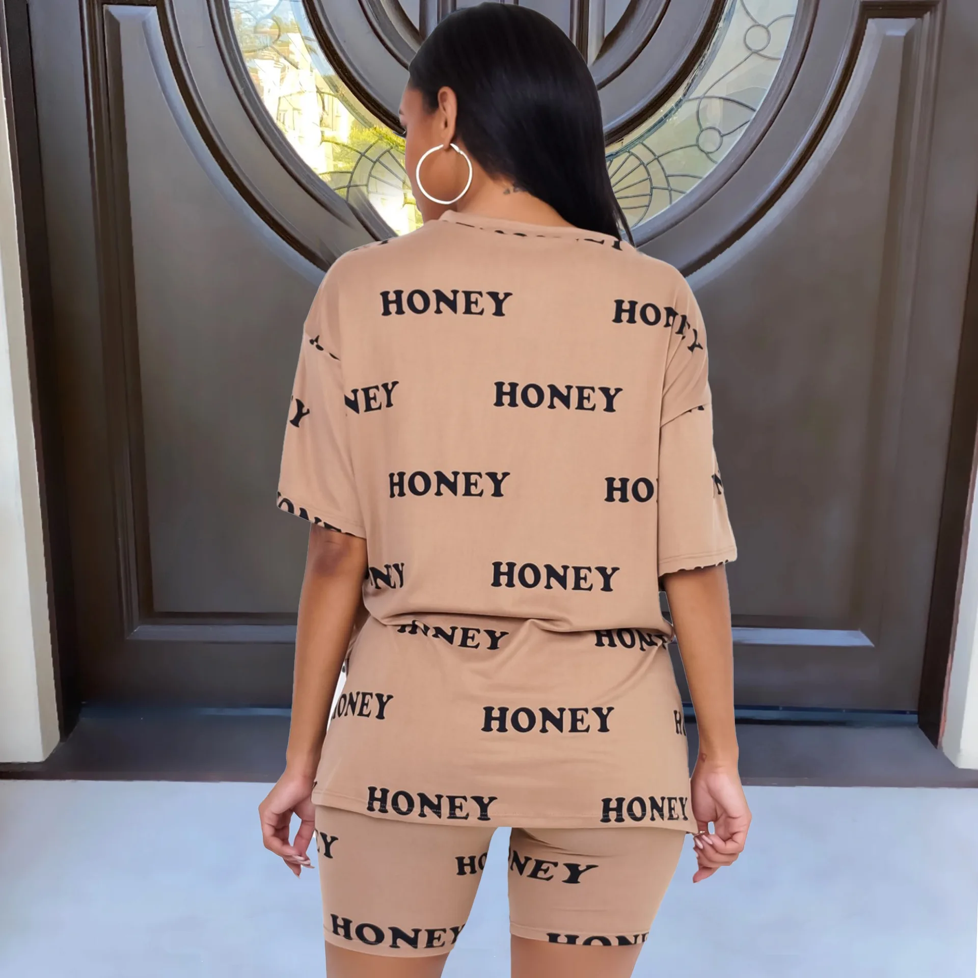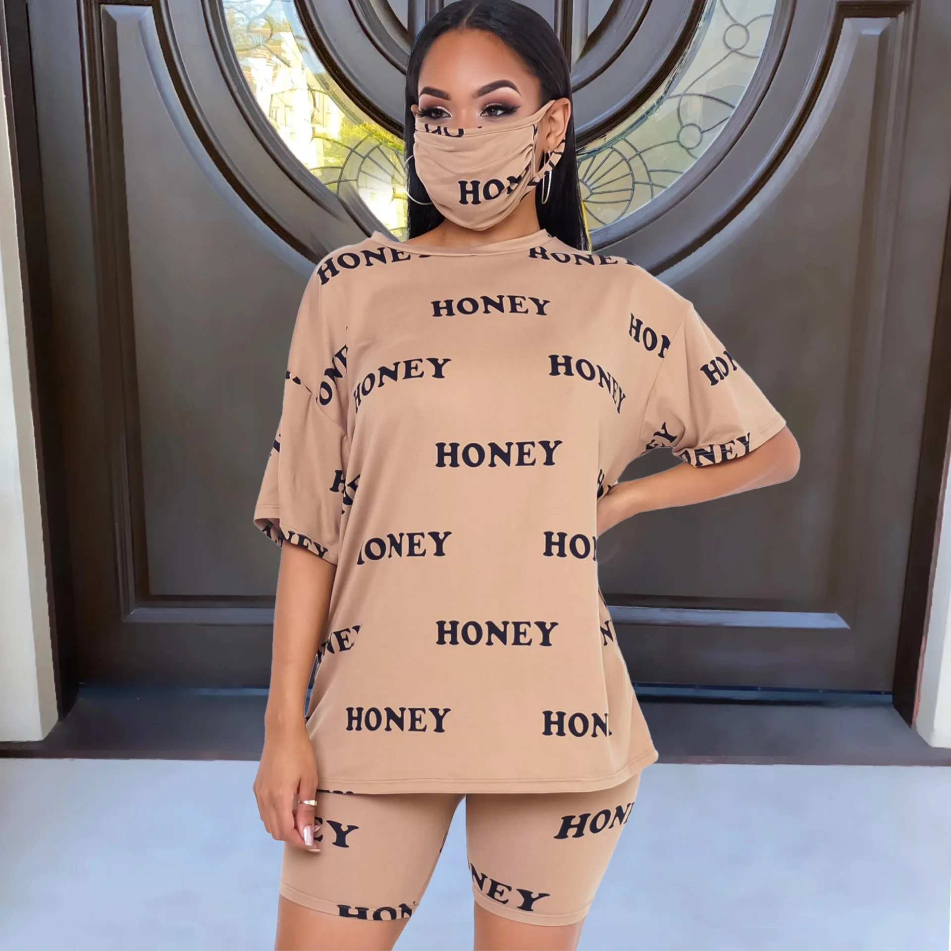 Wholesale Ladies Clothing Casual Fashion Women’s Print English Pattern Sports Two Piece Cycling Shorts Set