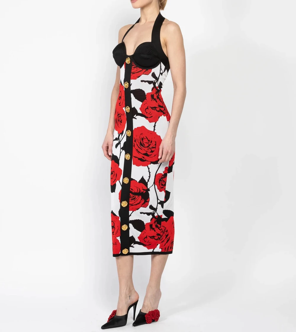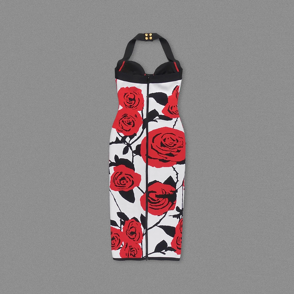 Women’s Clothing Jacquard Sexy Sleeveless Halter Dress Party Bandage Evening Dresses