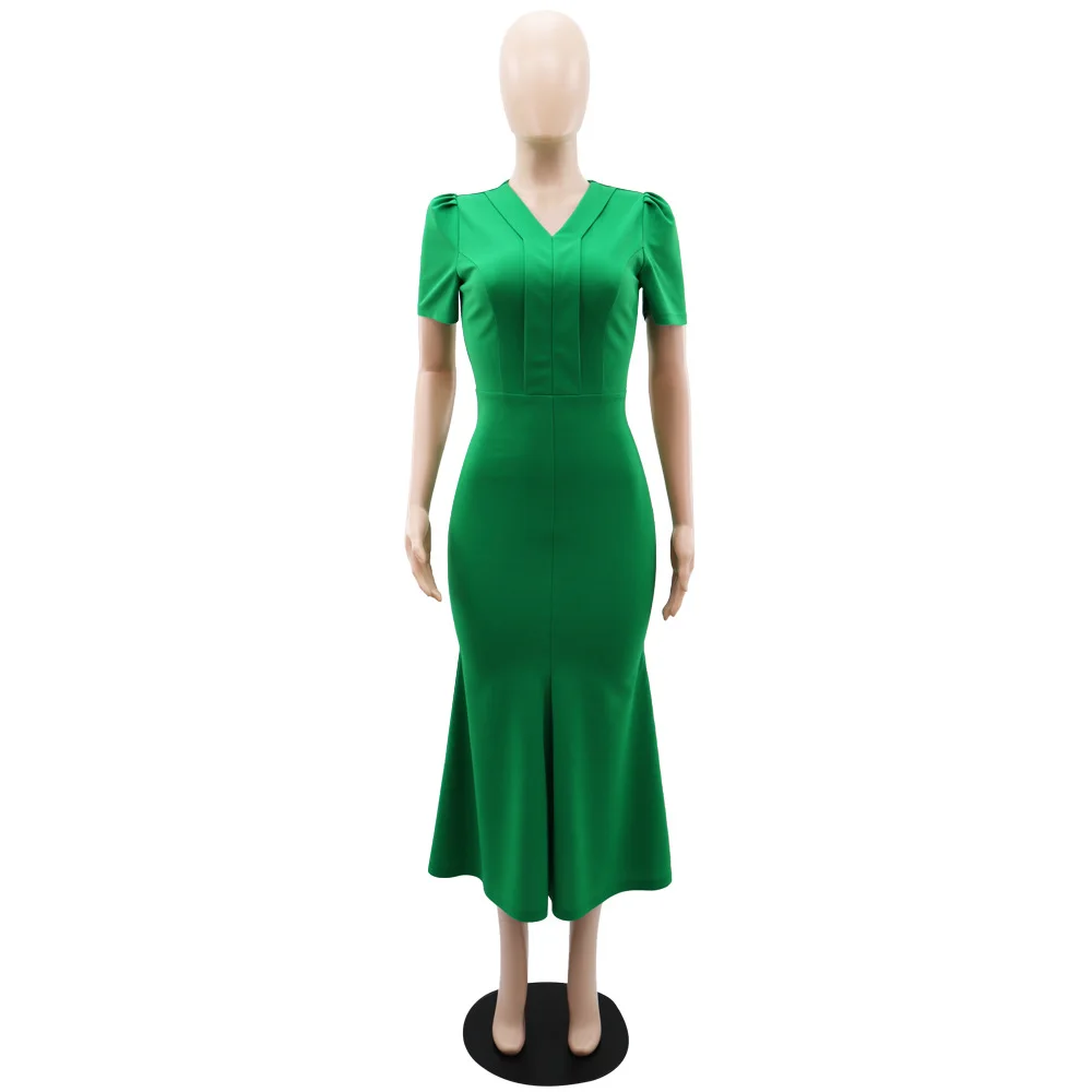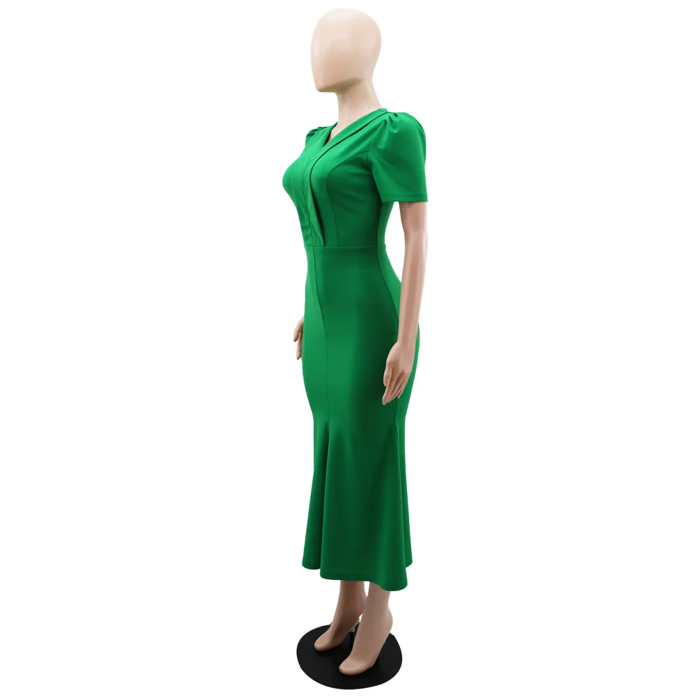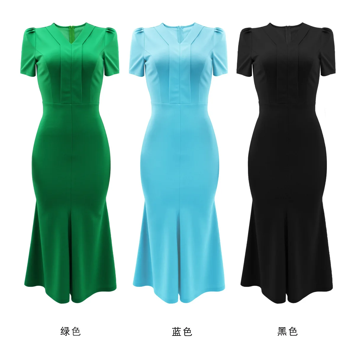 Women's clothing ladies elegant temperament solid color slim hip fishtail skirt summer casual women office dress
