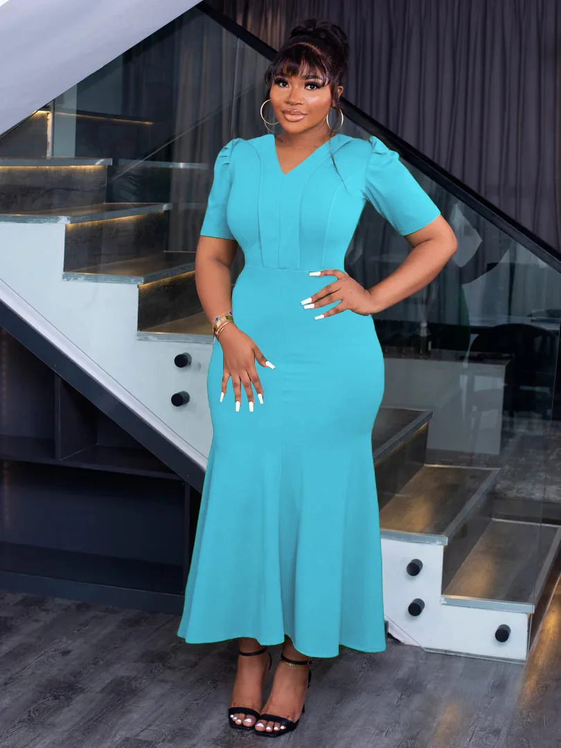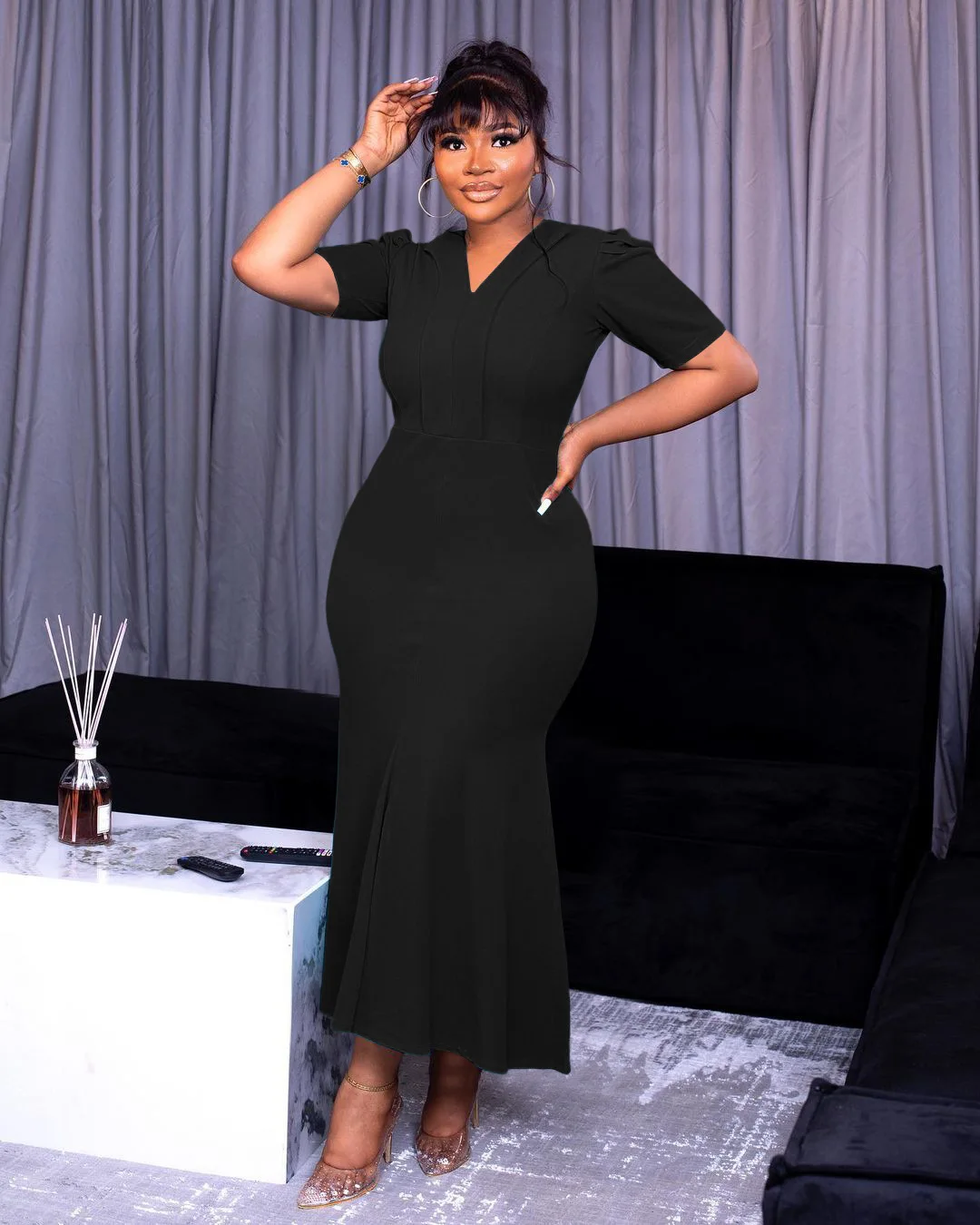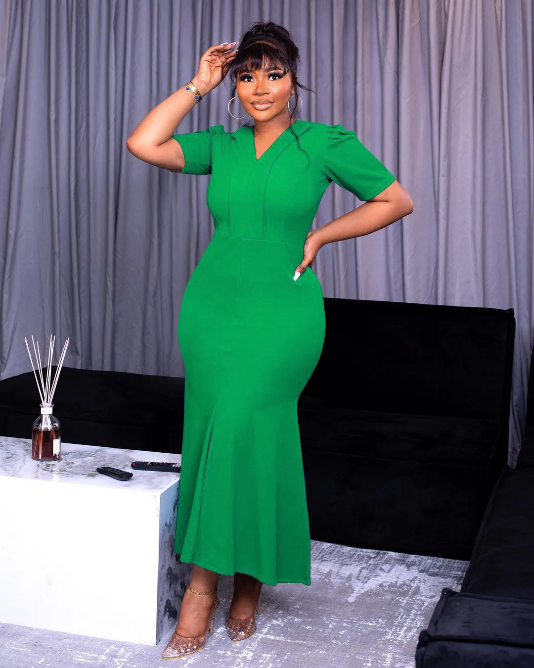 Women’s Clothing Ladies Elegant Temperament Solid Color Slim Hip Fishtail Skirt Summer Casual Women Office Dress