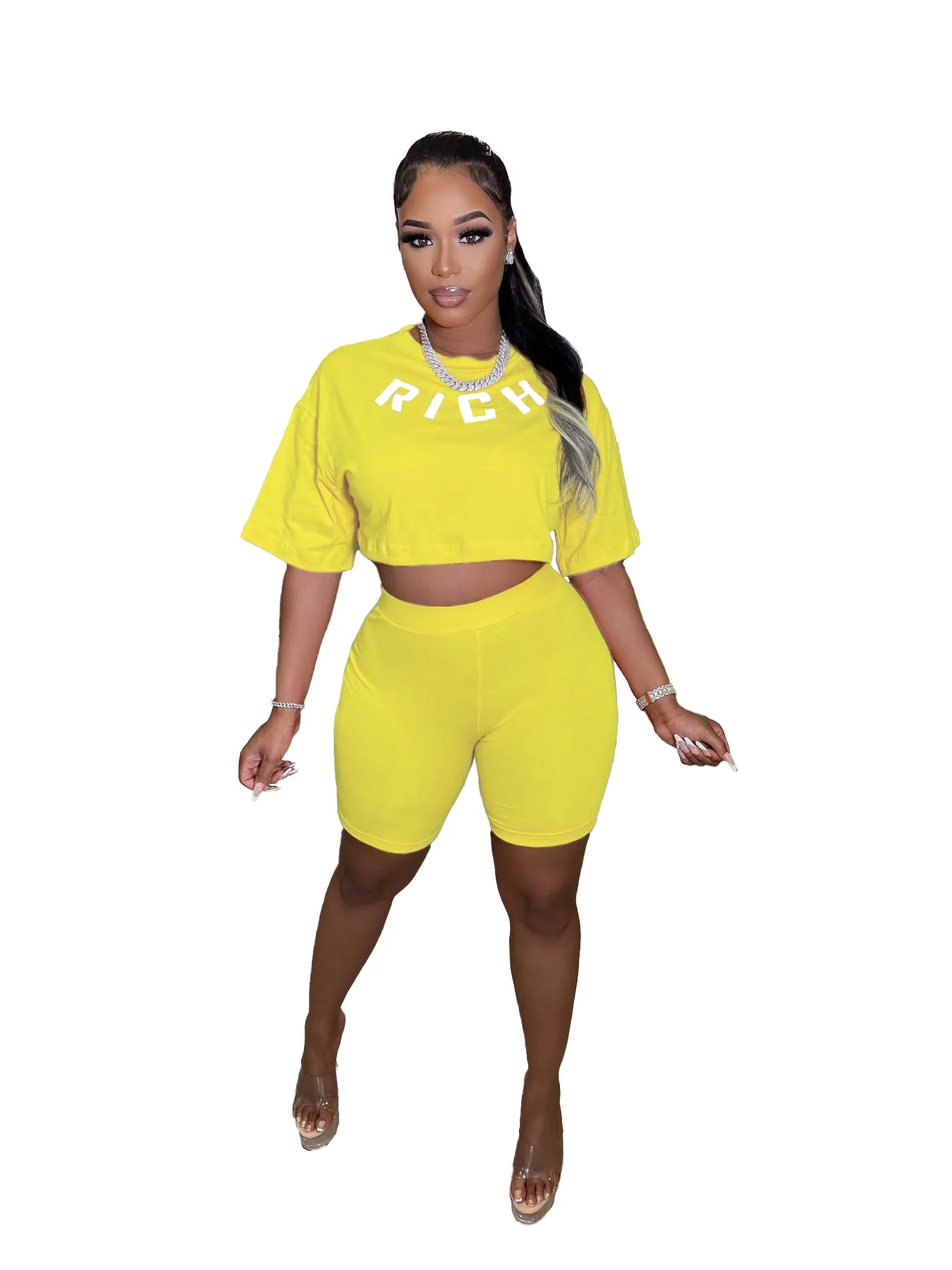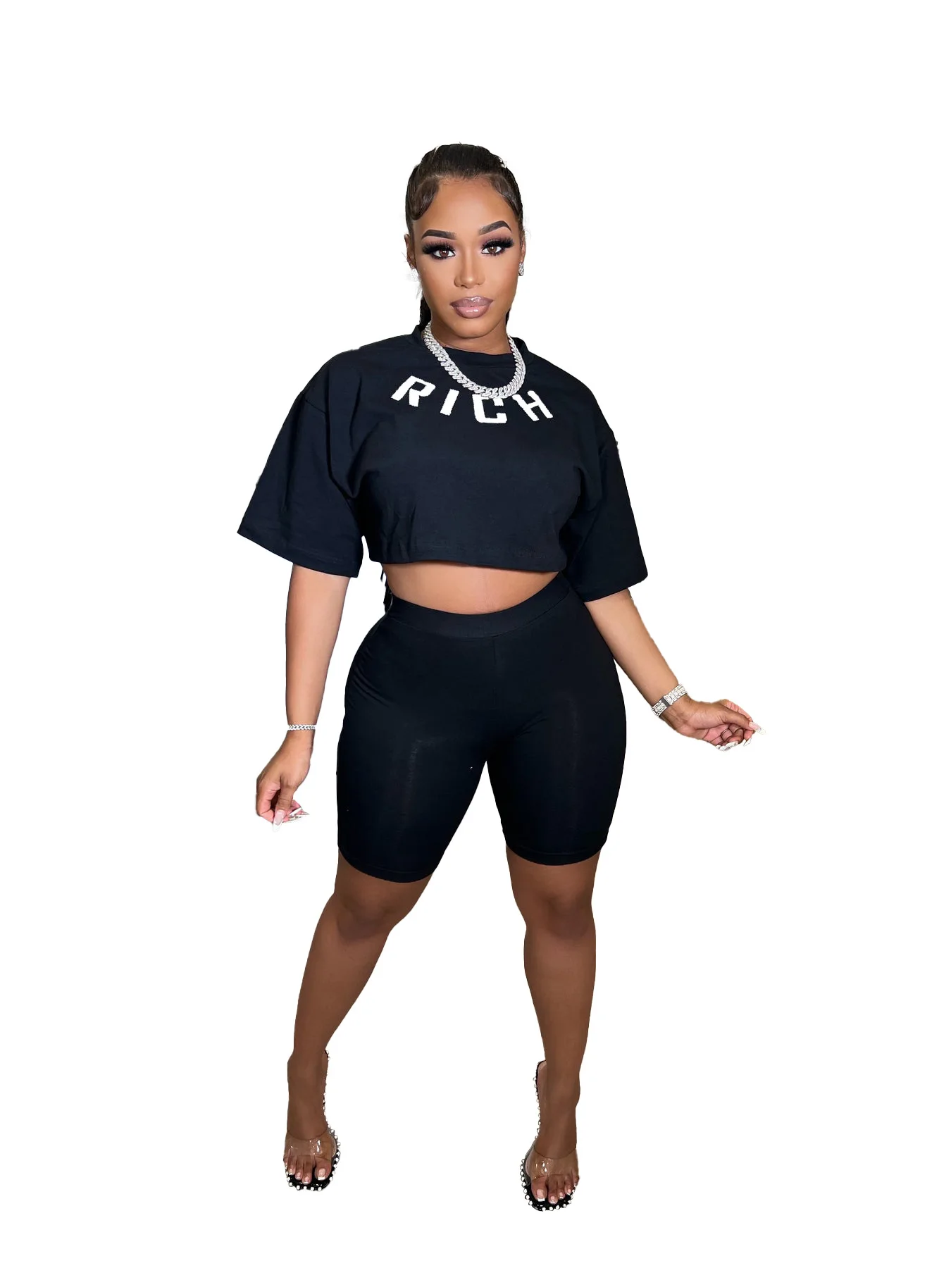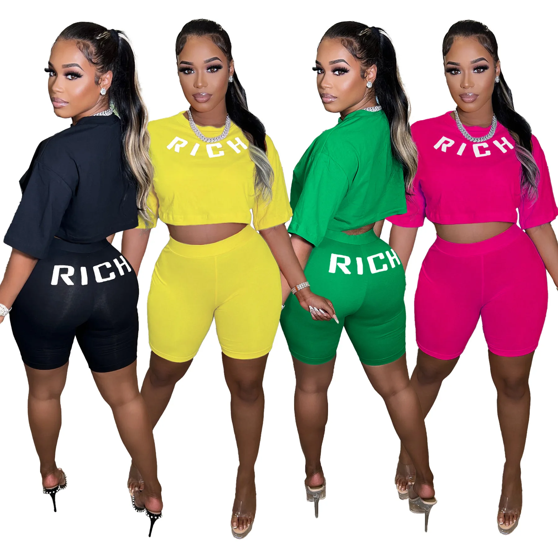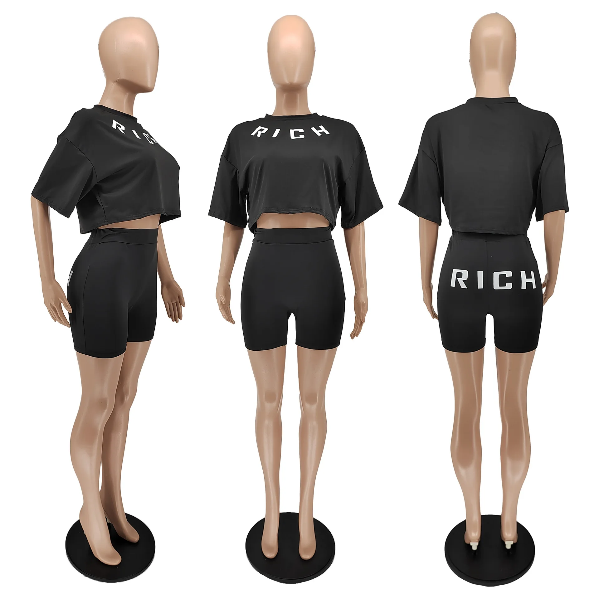 Y2k Women Summer Clothing Two Piece Set Rich Letter Print Tshirt and Shorts Sets Woman’s Sustainable Tshirt Shorts 2 Piece Set