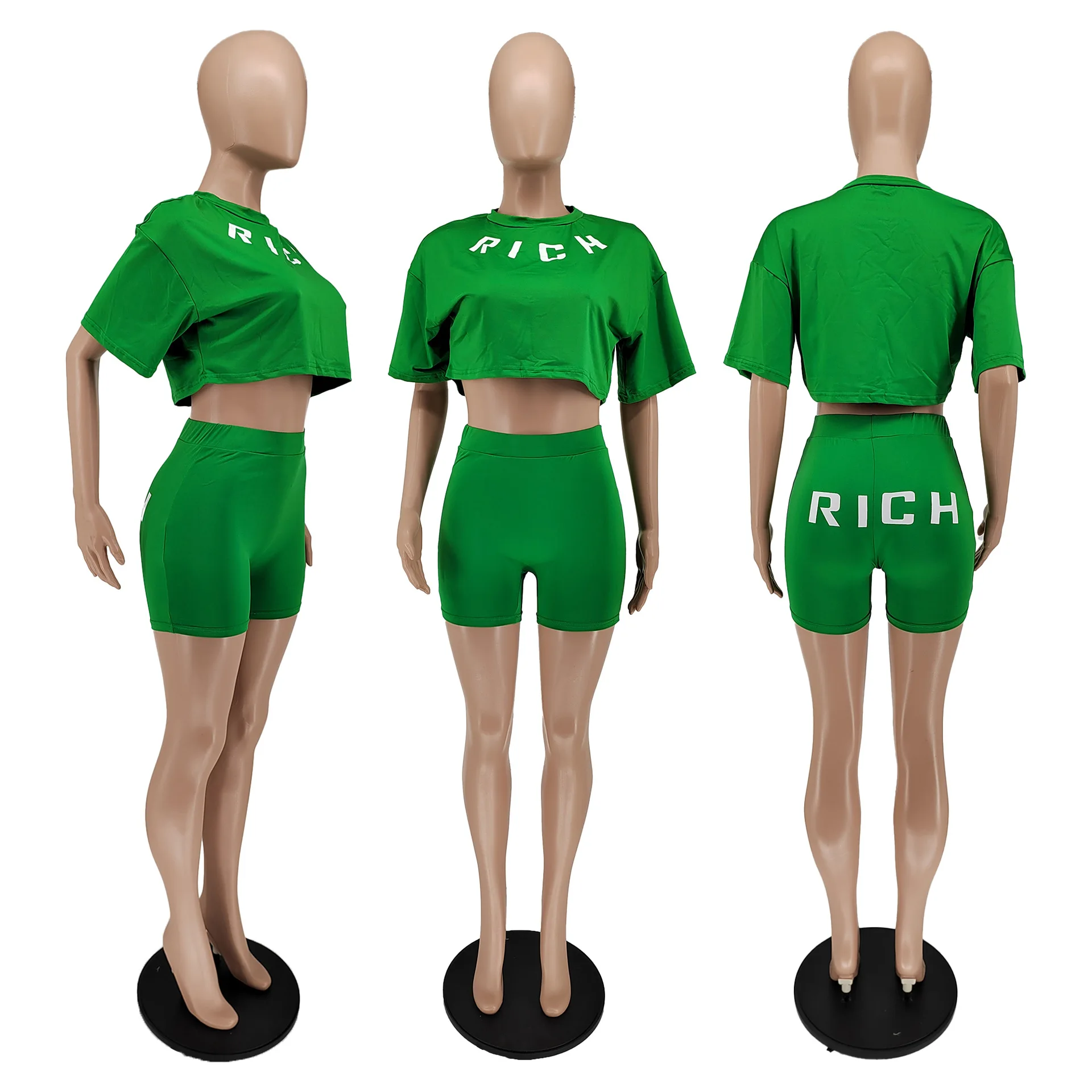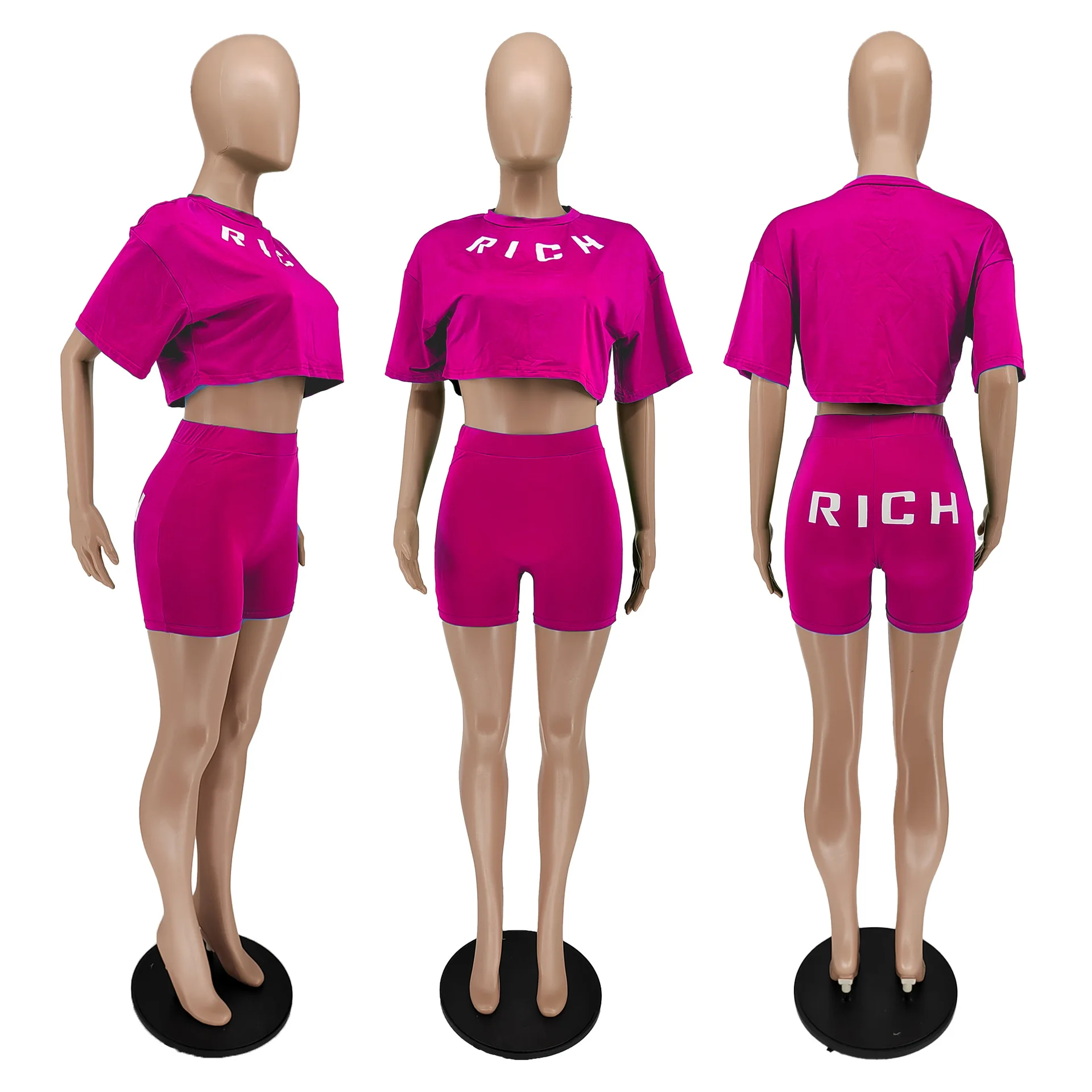 Be the first to review “Y2k Women Summer Clothing Two Piece Set Rich Letter Print Tshirt and Shorts Sets Woman’s Sustainable Tshirt Shorts 2 Piece Set”